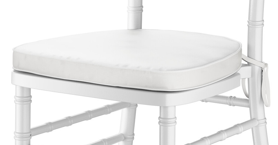 This chair includes a padded seat cushion that easily straps onto your chair and adds comfort to any event. The white color is stylish and capable of matching an event theme.