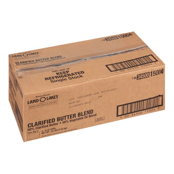 A versatile ingredient that chefs love to cook with, this Land O Lakes Performance Dairy clarified butter blend tub is especially useful for busy back-of-house applications! Melted and then slowly simmered, clarified butter is then strained to remove the milk solids and water, resulting in a pure butterfat product that is ideal for high-heat cooking. This product is made by blending concentrated, clarified butter with vegetable oil, leveraging the deliciously nutty flavor and creamy mouthfeel of clarified butter and delivering a final finished product that is highly spreadable and ready to use. Regarded as the most recognized butter brand in the country, this blend is sure to deliver consistent, reliable results in your kitchen.