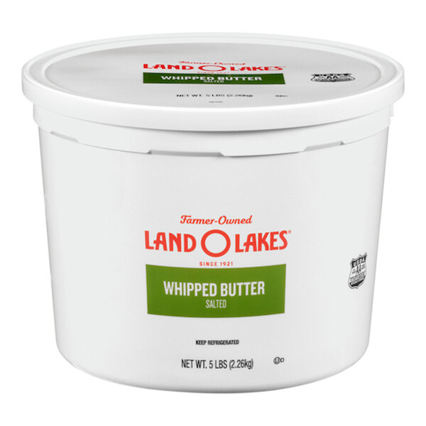 Create a variety of signature, decadent dishes with this Land O Lakes salted whipped Grade AA butter tub! Made with just sweet cream and salt, this Grade AA butter is the perfect way to add a rich, creamy taste to a variety of dishes without compromising on quality. Plus, it's aerated to a whipped consistency that's soft and easy to spread, even straight out of the refrigerator. This also increases the volume of the butter and reduces the cost per ounce. Regarded as the most recognized butter brand in the country, it is sure to deliver consistent, reliable results in your kitchen.