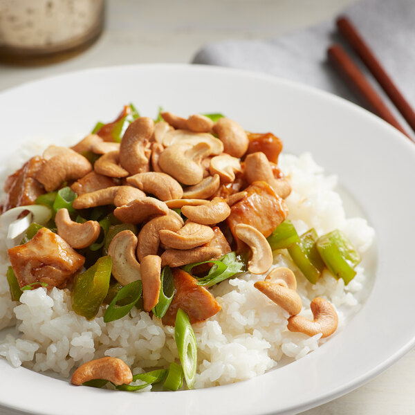 Roasted and salted, these large cashew pieces are great for cooking applications or for serving on their own! Slow roasted for freshness and flavor, these cashew pieces are then lightly salted for just the right amount of salty savory taste that your customers crave. They add crunchy texture and nutty taste to a variety of dishes, including vegetables, salads, chicken, or a scoop of ice cream. More than a garnish or topping, they can also be used in satisfying stir-frys or flavorful Indian curries. Blend these cashew pieces into your favorite recipes or mix them with other nuts and serve as hors d'oeuvres at your party or event.