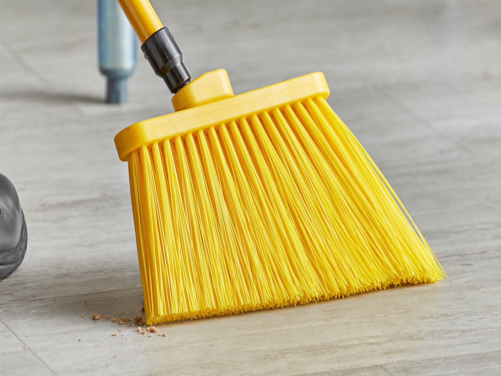 This Lavex yellow unflagged angled broom makes sweeping a breeze!