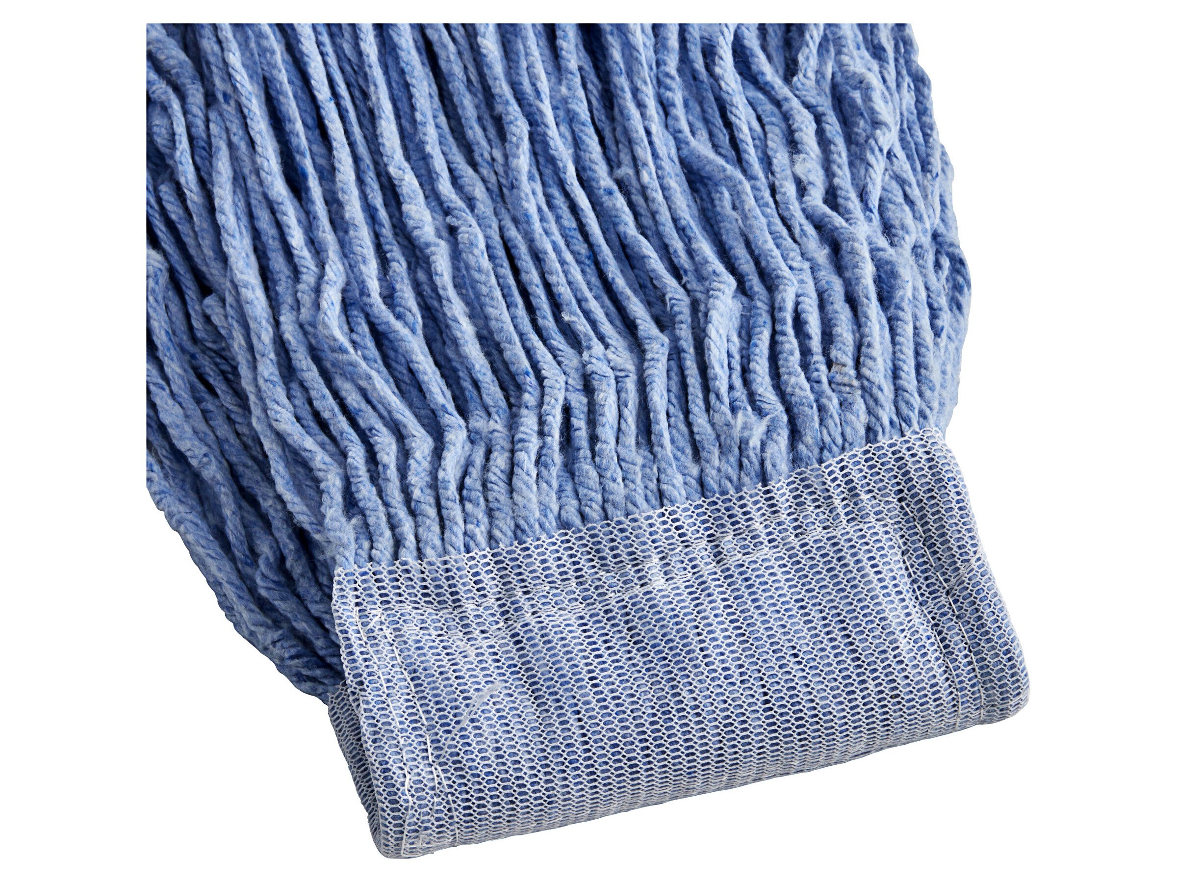 This mop head's blue color makes it easy to implement a color-coded cleaning system for the safety of your guests and employees. Use this mop head to quickly and easily absorb cleaning liquids or messes in restaurants, schools, and offices.