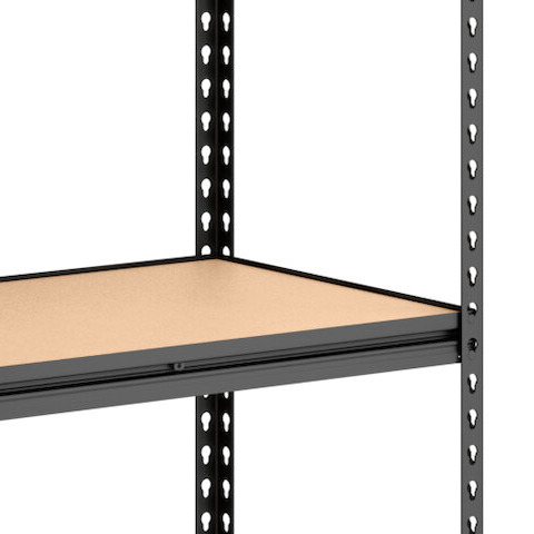 Each shelf has an impressive 800 lb. load capacity and 3/8" thick particle board, so you can confidently store heavy or oversized items. Since the shelves are solid, they allow for efficient loading and unloading and can easily accommodate items that might fall through regular vented or wire shelving.