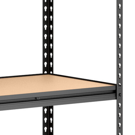 Each shelf has an impressive 800 lb. load capacity and 3/8" thick particle board, so you can confidently store heavy or oversized items. Since the shelves are solid, they allow for efficient loading and unloading and can easily accommodate items that might fall through regular vented or wire shelving.