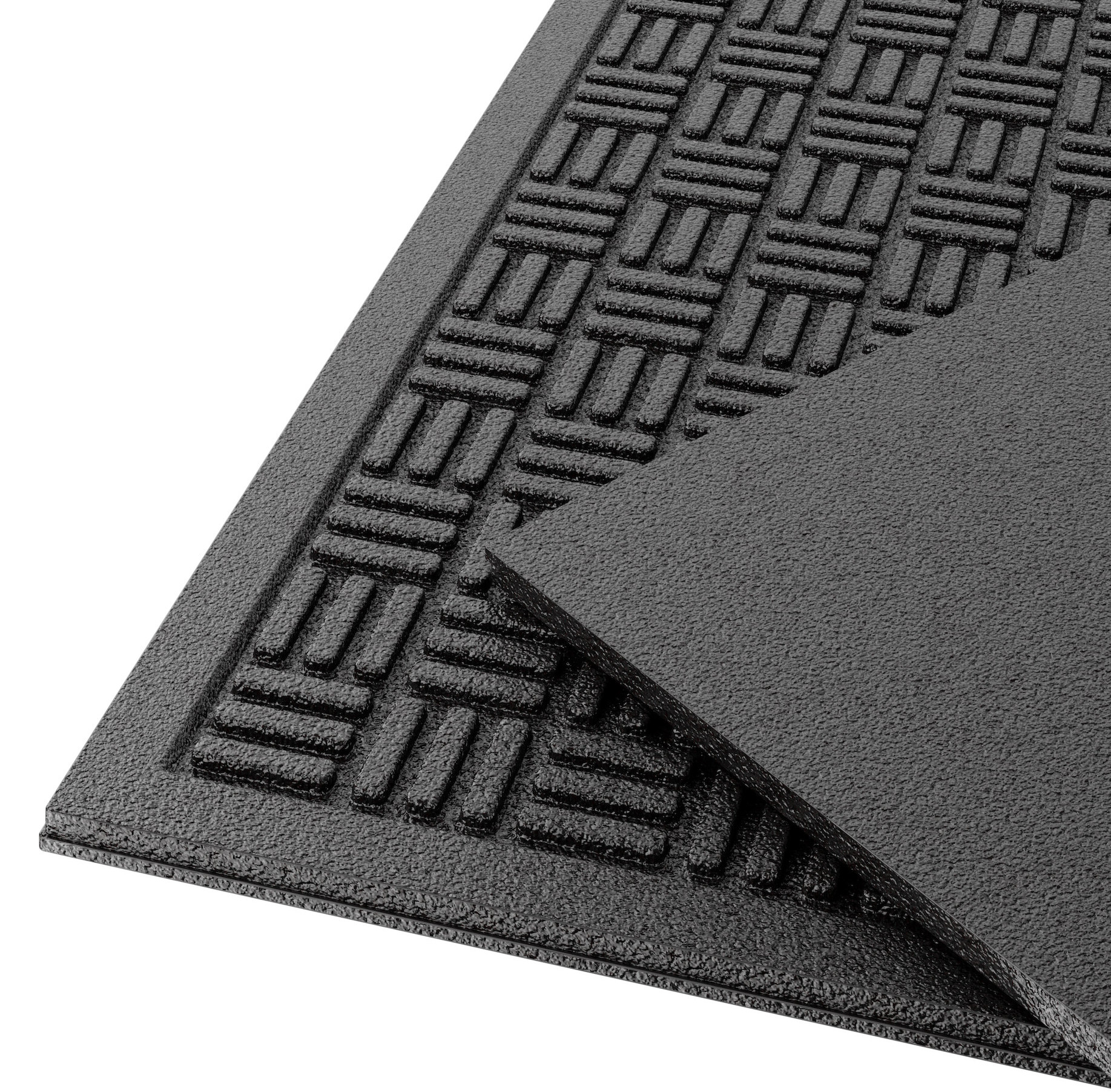 This mat features a dependable 90% recycled rubber construction that's weather-resistant to withstand seasonal changes and maintain its appearance over time. It also resists water and wear while providing excellent anti-slip traction. Plus, its molded parquet rib pattern provides a tough scraping surface to remove dirt and soil from shoes.