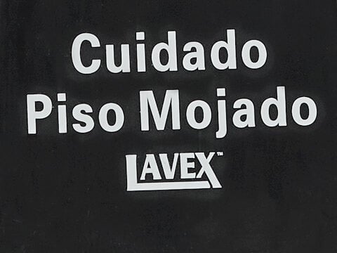 - Printed with "CAUTION Wet Floor" in English and Spanish