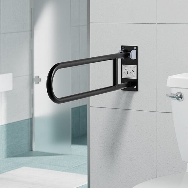 Provide customers with optimal comfort and accessibility in your venue's restroom with this Lavex 29" stainless steel matte black restroom swing-up grab bar!