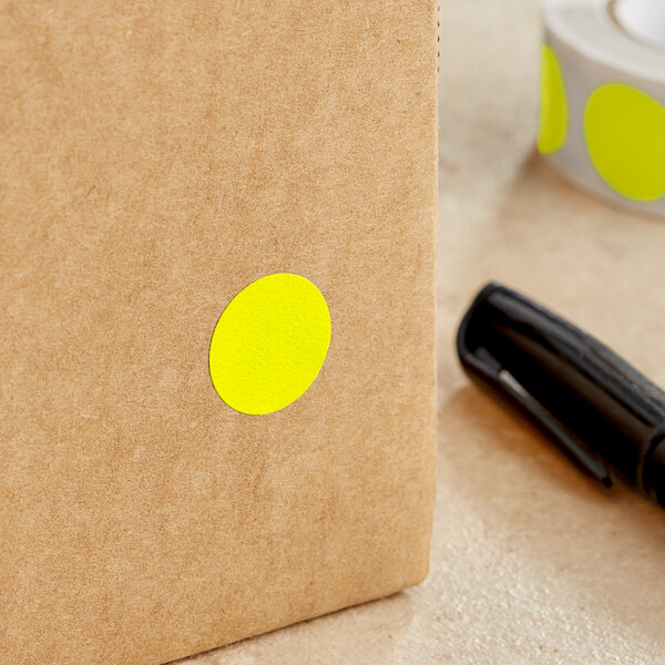 Thanks to this label's bright yellow background, you can implement a process that employees can easily follow to track, identify, manage, and organize inventory. Perfect for pallets or shelves, this label provides clear visual identification in commercial and retail settings. It's also easy to write on with pens or markers. Due to the semi-gloss finish, it's best to give text written in marker 1 minute to dry.