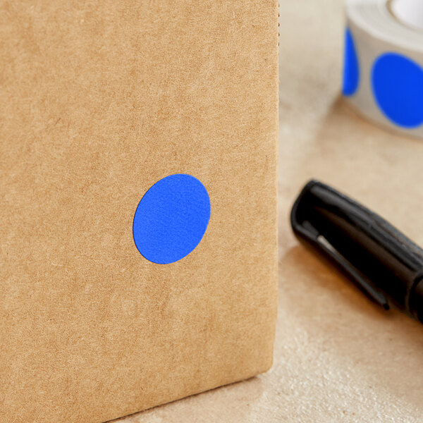 This label is easy to write on thanks to its blank design. Made with a 1 1/2" core diameter and pressure-sensitive paper with permanent adhesive, this item can be confidently placed on trays, plastic containers, boxes, and folders. The label's 3/4" diameter is the perfect size to mark inventory or create charts and visual aids.