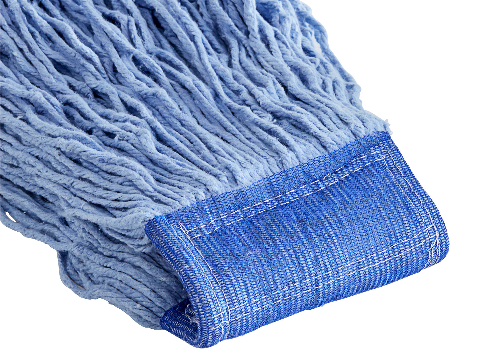 This mop head's blue color makes it easy to implement a color-coded cleaning system for the safety of your guests and employees. Use this mop head to quickly and easily absorb cleaning liquids or messes in restaurants, schools, and offices.
