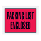 Protect documents from moisture, dirt, and abrasions with this Lavex 4 1/2" x 6" 2 mil red half-full face printed polyethylene packing list envelope. Manufactured from a blend of 100% virgin low-density and linear low-density polyethylene (LDPE), this envelope is strongly built to withstand shipping conditions. It features a hot melt adhesive backing that sticks to a variety of surfaces. This envelope includes text reading, "Packing List Enclosed" in bold black lettering against a bright red full face background for fast identification. The text takes up half the envelope, allowing extra space to customize as needed.