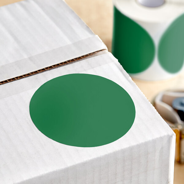 This label is easy to write on thanks to its blank design. Made with a 1 1/2" core diameter and pressure-sensitive paper with permanent adhesive, this item can be confidently placed on trays, plastic containers, boxes, and folders. The label's 4" diameter is the perfect size to mark inventory or create charts and visual aids.