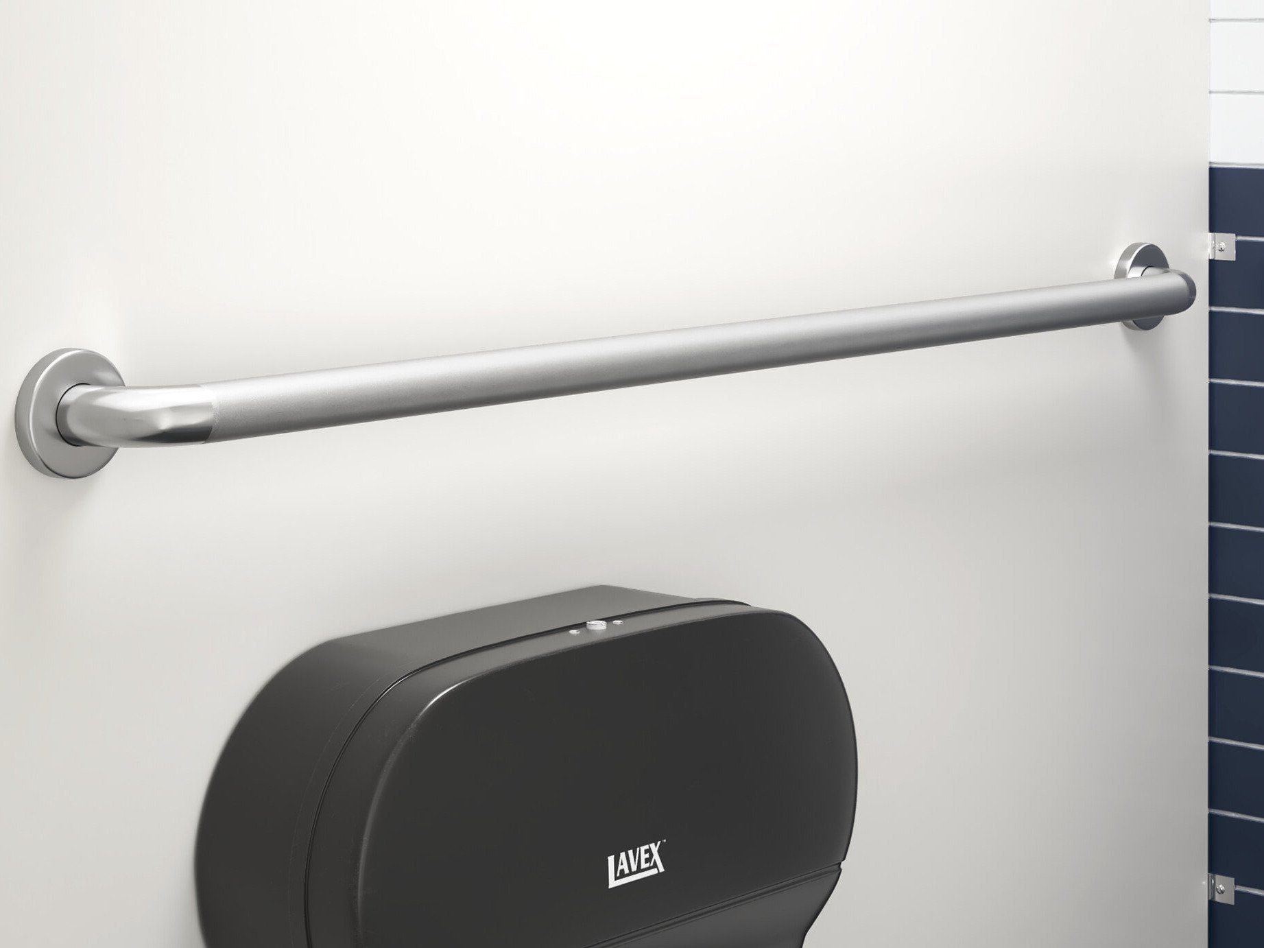 Provide customers with optimal accessibility in your venue's restroom with this Lavex 48" restroom grab bar! This dependable restroom grab bar will help prevent slips, falls, or injuries in your public restroom to put your guests at ease. Plus, the peened grip adds texture to ensure a secure grip for all users.