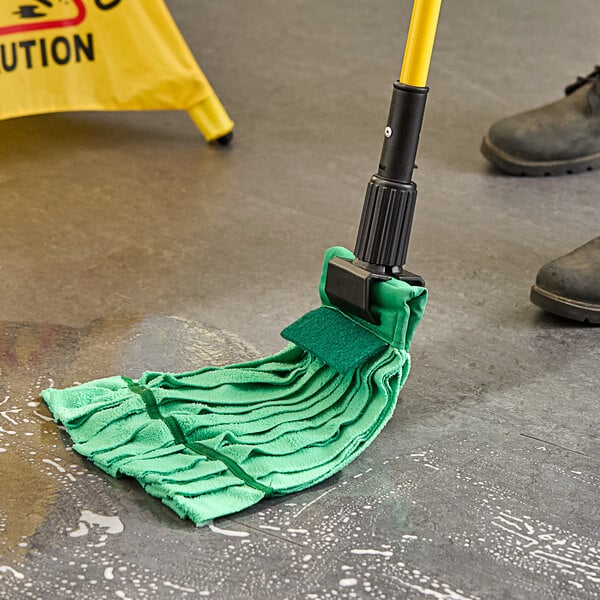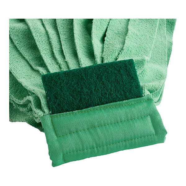 Use this mop pad on any hard surface in your office, restaurant, school, or healthcare facility for a residue- and streak-free floor. Keep your establishment clean and ready for customers or guests with this Lavex 9 oz. green microfiber strip mop with 5" green headband!