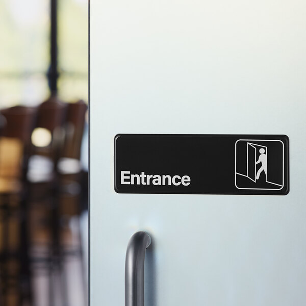 Enhance the functionality of your establishment with the Lavex 9" x 3" black and white entrance sign.