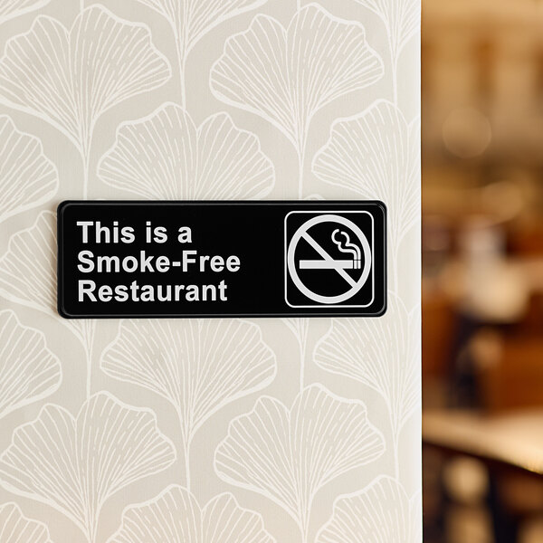 Maintain a smoke-free environment in your restaurant with the Lavex 9" x 3" black and white this is a smoke-free restaurant sign.