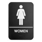 Guide your customers to your restroom location with this Lavex restroom sign! This sign is designed with sleek, white-on-black lettering for optimal color contrast, making it easy for customers to see and read the sign from across the room or hallway. The sign features braille letters across the bottom to aid those with visual impairments. It features a female and male symbol at the top to accommodate all levels of literacy and multilingual communication.