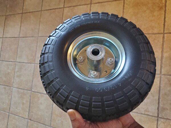 Ships free withMoving heavy loads is easy and fast with this Lavex solid rubber wheel! Made of solid rubber, this rugged wheel eliminates punctures and blow-outs to keep your hand truck up and rolling. Plus, the 10" diameter promotes better handling. Built to withstand heavy-duty use in a commercial environment, it has a 300 lb. load capacity and directly replaces the wheel that came with your 500 lb. Lavex hand truck (sold separately).
