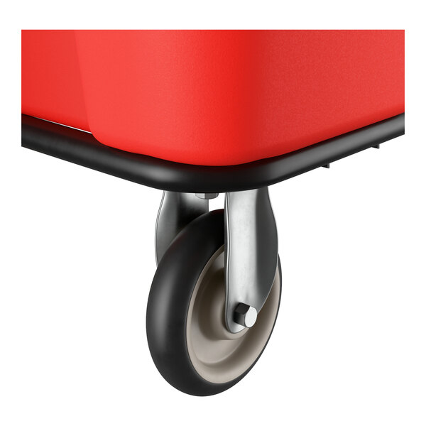 This cube truck features 2 rigid and 2 swivel 5" x 1 1/4" casters that allow for easy maneuverability from one area of your facility to another, making hauling tasks quick and easy for your staff.
