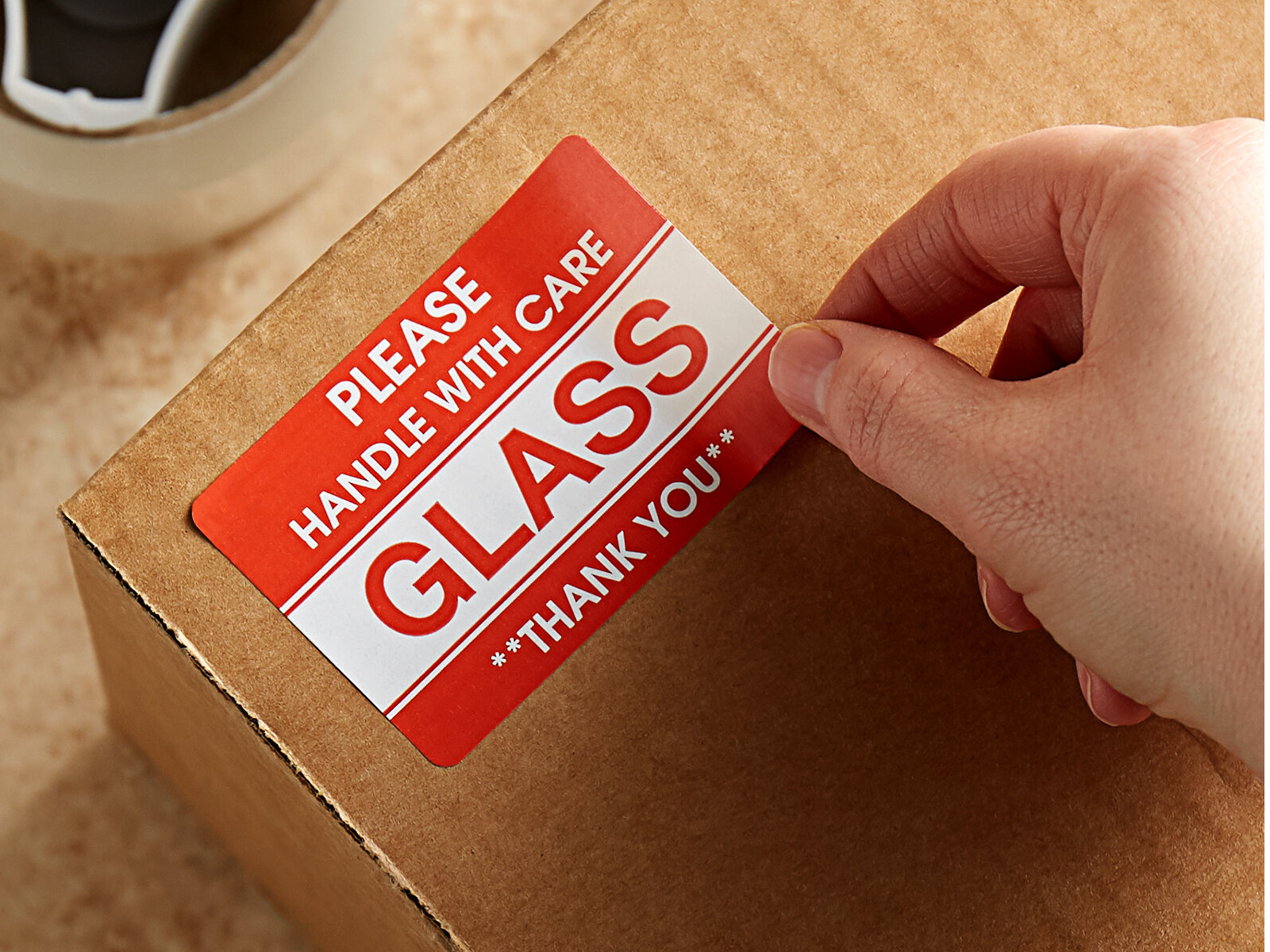 Love this sticker! Life saver for shipping fragile things! I thought it's a little bigger but its very easy to peel and use. Sticks perfectly.