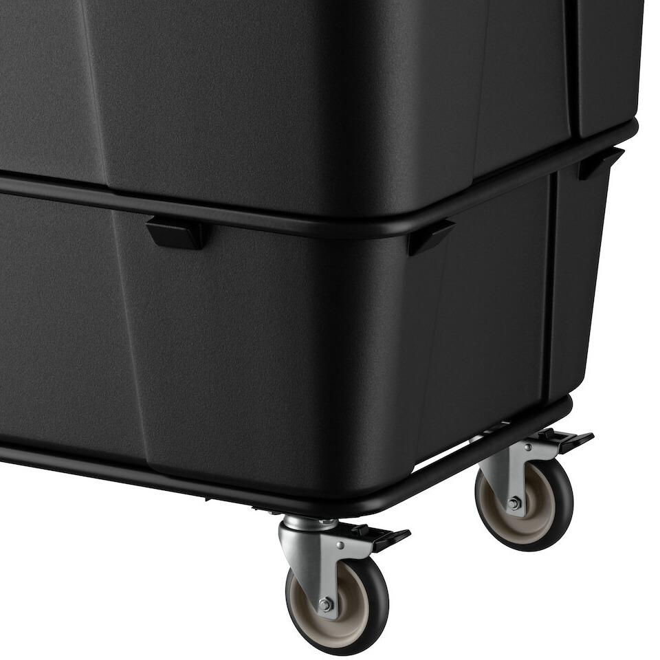 This cube truck features 2 rigid and 2 swivel 5" x 1 1/4" casters that allow for easy maneuverability from one area of your facility to another, making hauling tasks quick and easy for your staff.