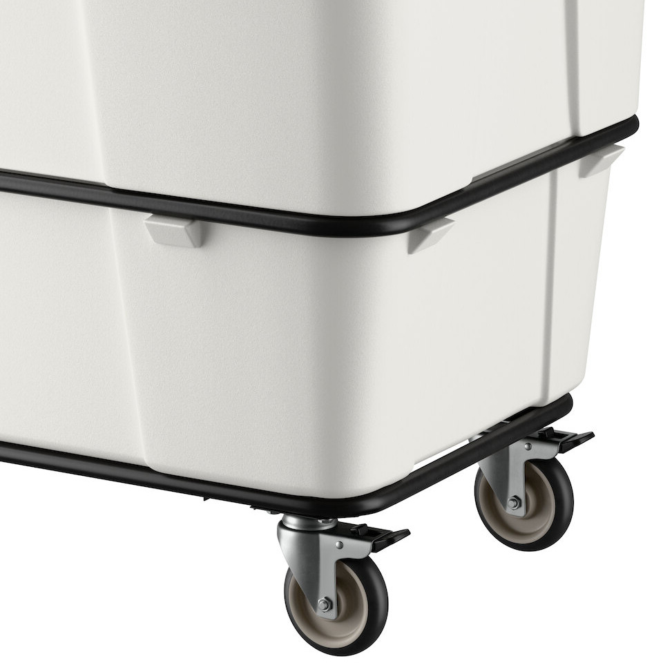 This cube truck features 2 rigid and 2 swivel 5" x 1 1/4" casters that allow for easy maneuverability from one area of your facility to another, making hauling tasks quick and easy for your staff.
