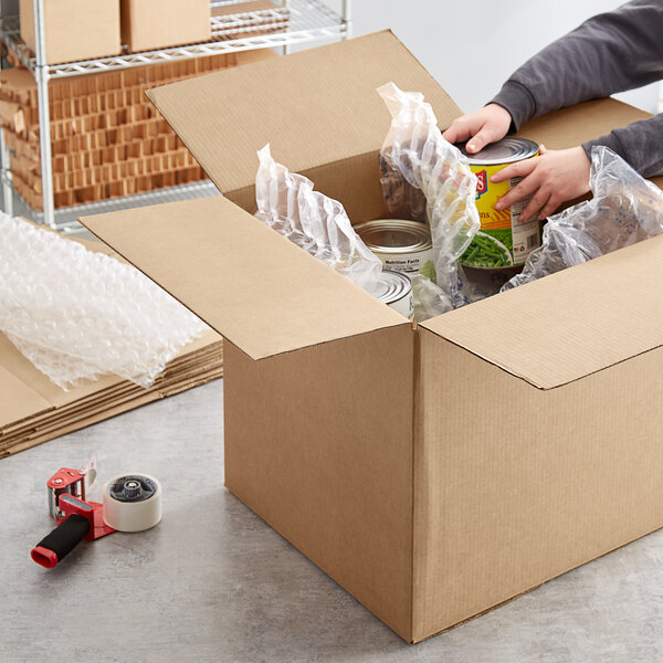 This durable shipping box’s 44 ECT (edge crush test) rating increases stacking strength and ensures that the box retains its shape while being transported and stacked with other cargo. Its kraft-colored surface is easy to write on for labeling or addressing. Additionally, it comes in a bundle of 10, so there's no need to worry about running out right away.