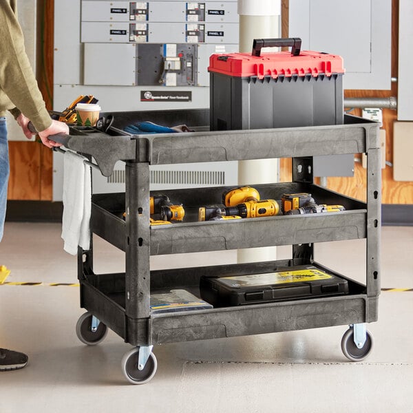 Thanks to the cart's 3 spacious shelves, this item can also accommodate up to 550 lb. of evenly distributed weight. Each shelf even offers a raised lip to help prevent items from sliding off during transport. Plus, it includes multiple built-in tool compartments that allow you to effectively organize and keep small parts close at hand.