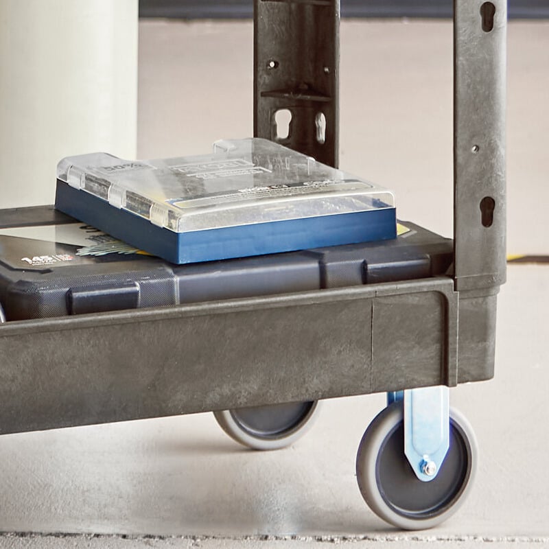 Thanks to the cart's 2 spacious shelves, this item can also accommodate up to 550 lb. of evenly distributed weight. Each shelf even offers a raised lip to help prevent items from sliding off during transport. Plus, it includes multiple built-in tool compartments that allow you to effectively organize and keep small parts close at hand.