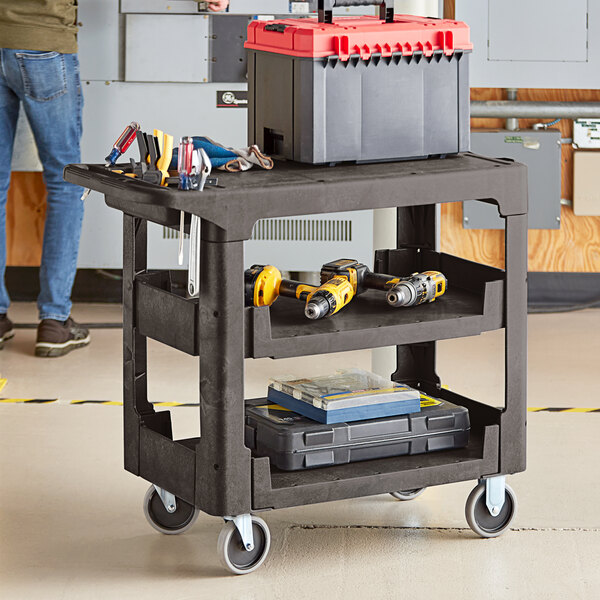 Thanks to the cart's 3 spacious shelves, this item can also accommodate up to 550 lb. of evenly distributed weight. Each shelf even offers a raised lip to help prevent items from sliding off during transport. Plus, it includes multiple built-in tool compartments that allow you to effectively organize and keep small parts close at hand.