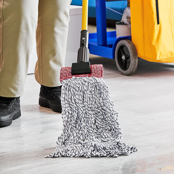 This mop head's loop-end design conveniently reduces tangling and fraying and prevents unraveling, prolonging its use in your business. This mop features colored bands, so you can designate its use in your establishment and simplify your cleaning routine.