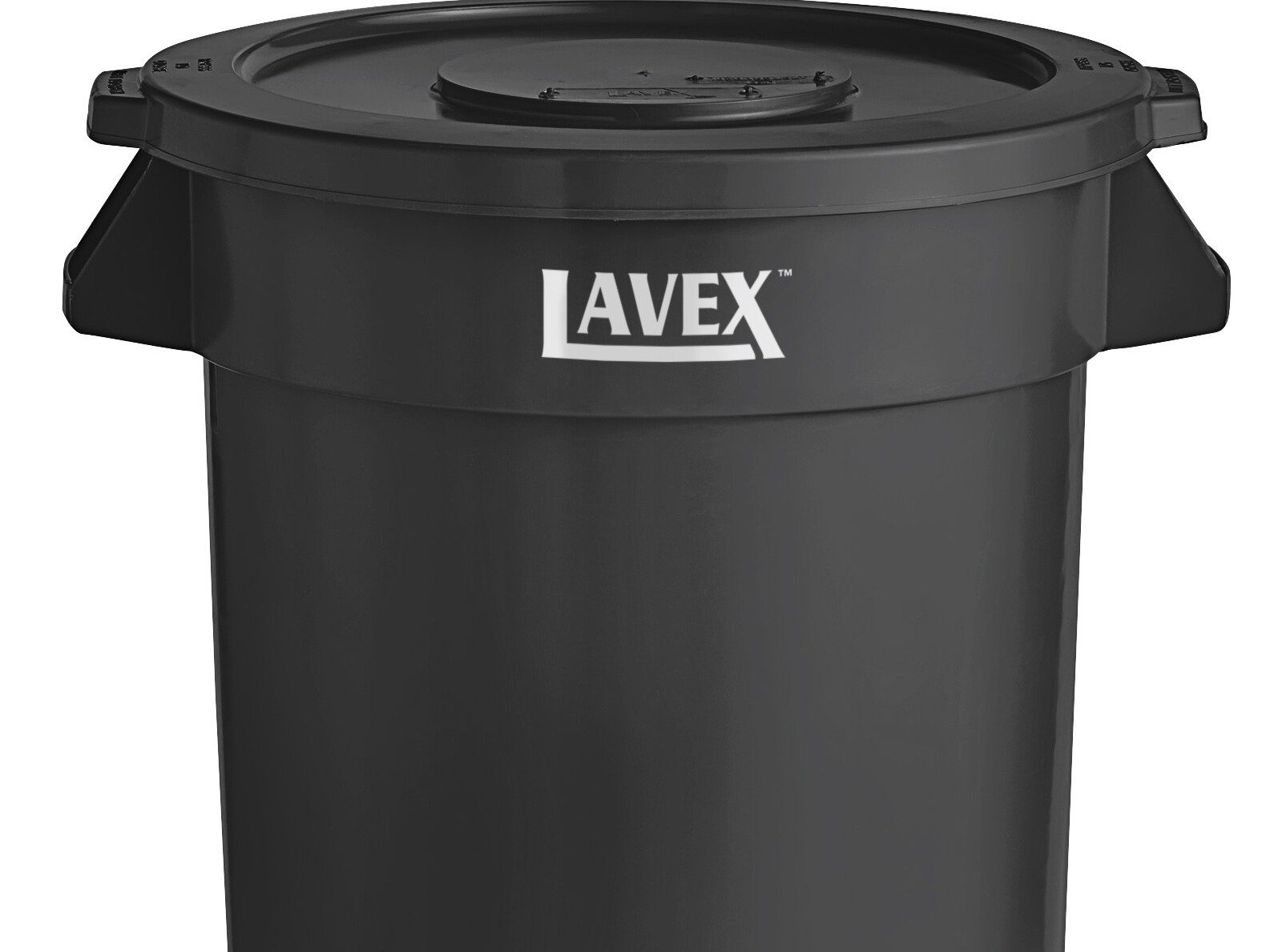 This Lavex black trash can is essential for a variety of tasks, including proper trash storage and removal. The black coloring helps this trash can stand out and it's great for creating a color-coded system in your kitchen to prevent cross-contamination. Regardless of whether you need a recycling can, trash can, or large bulk storage container, this can is sure to do the job! This can boasts NSF standard 21, meaning it meets the minimum sanitation requirements for materials, design, and construction of new thermoplastic refuse containers intended for indoor and outdoor refuse storage. The twist-on dolly style has a 250 lb. weight limit and is simple to use. It also extends the overall life of the can by not dragging it on the ground.