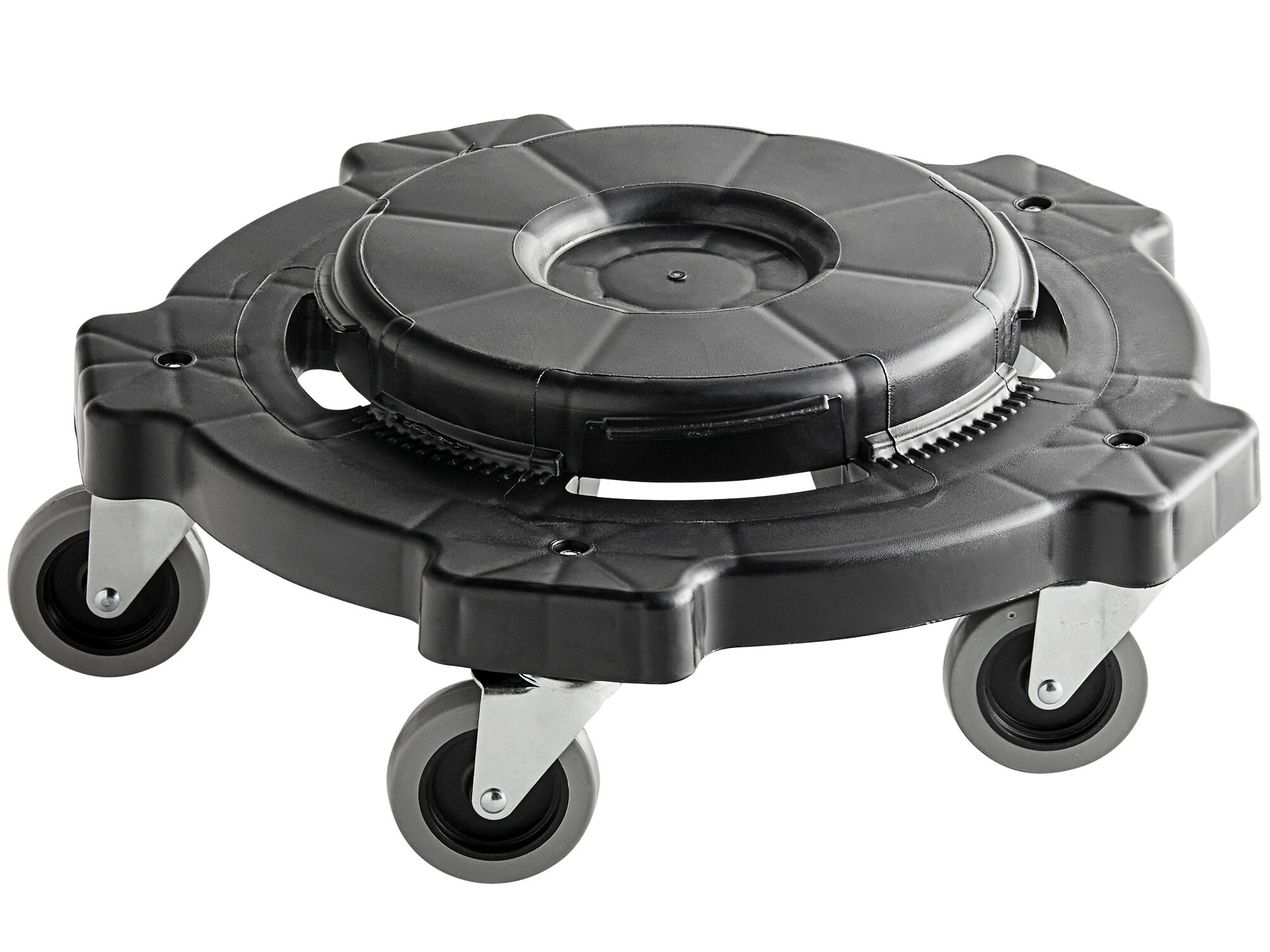 This Lavex green trash can is essential for a variety of tasks, including proper trash storage and removal. The green coloring helps this trash can stand out and it's great for creating a color-coded system in your kitchen to prevent cross-contamination. Regardless of whether you need a recycling can, trash can, or large bulk storage container, this can is sure to do the job! This can boasts NSF standard 2, meaning it meets the minimum food protection and sanitation requirements for materials, design, fabrication, construction, and performance of food handling and processing equipment in bakeries, cafeterias, kitchens, and pantry units. The twist-on dolly style has a 250 lb. weight limit and is simple to use. It also extends the overall life of the can by not dragging it on the ground.