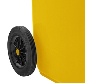 This can features (2) 8" heavy-duty wheels that are bound to reduce user stress and fatigue while enabling effortless maneuverability over steps and curbs. The wheels also offer a durable polyethylene interior with a non-marking polyurethane tread, which guards against damage to indoor flooring and prevents slipping when used outdoors.