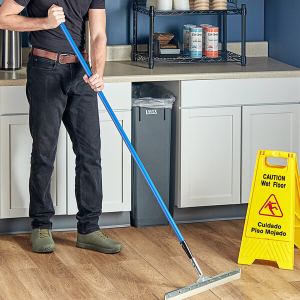 Best of all, this handle's blue color allows your team to implement a color-coded cleaning system in conjunction with your business's HACCP plan. Designate it for use in a certain area to prevent cross-contamination and promote sanitary conditions. Choose this Lavex blue broom / squeegee handle to keep your facility tidy!