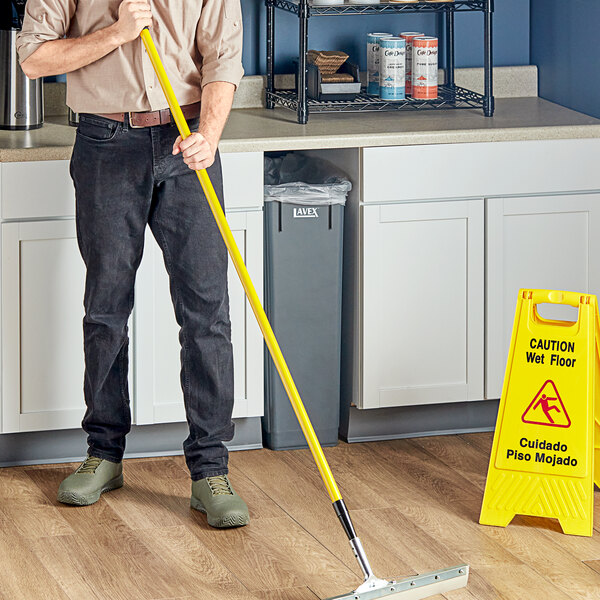 Best of all, this handle's yellow color allows your team to implement a color-coded cleaning system in conjunction with your business's HACCP plan. Designate it for use in a certain area to prevent cross-contamination and promote sanitary conditions. Choose this Lavex yellow broom / squeegee handle to keep your facility tidy!