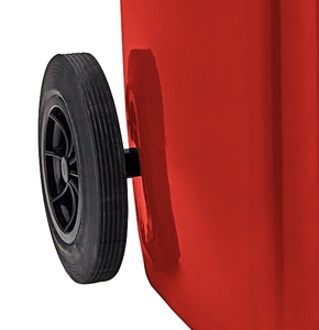 This trash can features (2) 10" heavy-duty wheels that reduce user stress and fatigue while enabling effortless maneuverability over steps and curbs. Constructed of durable polyethylene interior with a non-marking polyurethane tread, these wheels guard against damage to indoor flooring and prevents slipping when used outdoors. Plus, this Lavex trash can's ergonomic molded-in handle provides a comfortable grip for reliable steering and increased control, whether being pushed or pulled. This can is crafted with comfort and ease of use in mind!