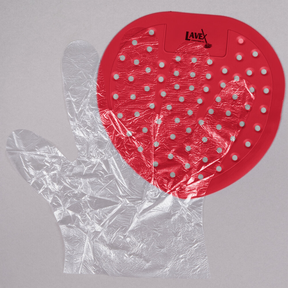 A clear, disposable glove is included with each urinal screen for sanitary placement and removal.