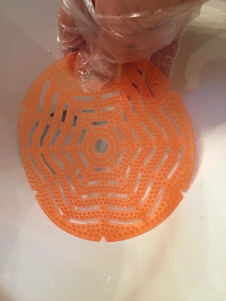 This urinal screen's anti-splash design also offers the flexibility needed to fit different urinals while providing translucent drain protection. Plus, this deluxe screen won't flake or disintegrate like toss blocks.