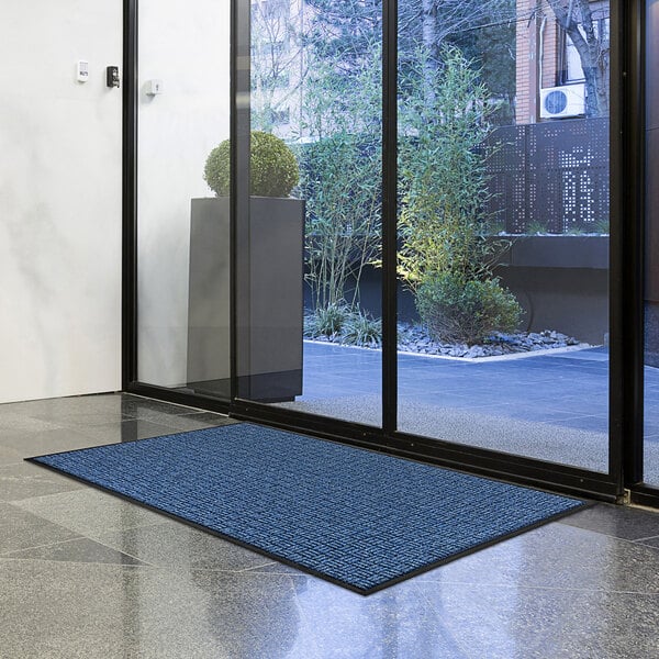 Keep guests and staff from tracking moisture, dirt, and dust onto your floors with this Apache Mills 3' x 4' water absorbent navy blue parquet indoor entrance mat.
