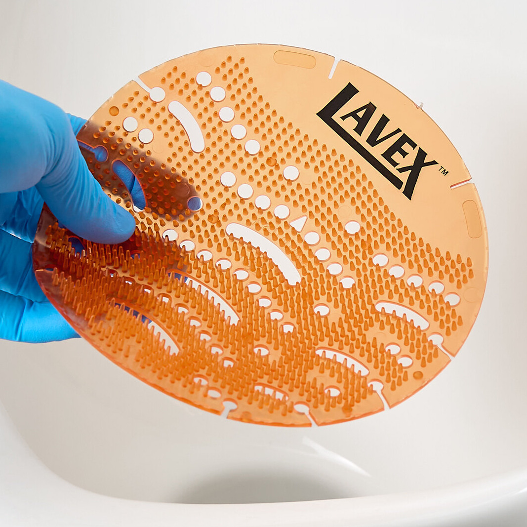 Each Lavex urinal screen provides up to 30 days of continuous fragrance, making it a cost-effective and long-lasting solution for commercial restrooms. For added convenience, it protects drains from debris such as chewing gum and trash, preventing costly clogs and overflow issues that can disrupt your operations. Keep your restroom smelling fresh and welcoming with this Lavex urinal screen.