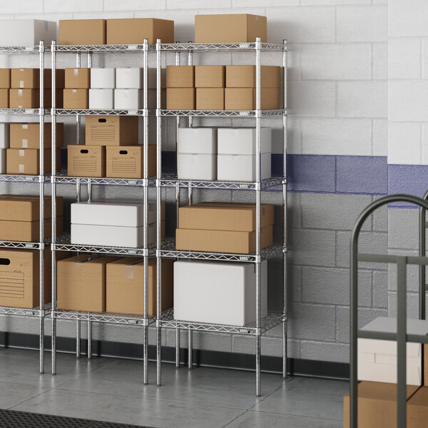 Designed for use in dry environments, this shelving unit is an excellent choice for organizing and maximizing storage space. Whether you're looking to streamline your warehouse operations or simply need additional storage in your industrial facility, this heavy-duty shelving kit is the perfect solution. Mix and match with Lavex Pro accessories (sold separately) to personalize your kit! Invest in the Lavex Pro chrome heavy-duty 5-shelf kit and experience the durability and functionality it brings to your workspace.