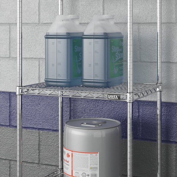 This shelf features a convenient design that maximizes airflow between and around products. Whether you need to store tools, equipment, or supplies, it's an ideal storage solution for warehouses and industrial settings. Together with Lavex Pro chrome heavy-duty posts, additional shelves, and accessories (all sold separately) of your choosing, you can use this shelf to create a customized storage solution to best meet your facility's needs and space.