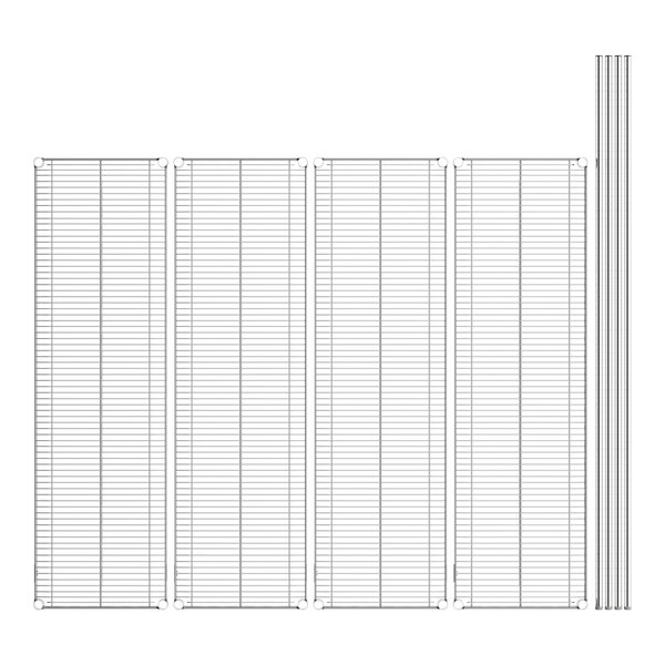 This kit includes (4) 74" posts, (4) 18" x 60" shelves, and 16 pairs of split sleeves. Made of durable, heavy-duty, reinforced chrome-plated steel, this unit is built to last. The chrome plating not only gives it a sleek and professional appearance, but it also makes it resistant to rust and corrosion, ensuring that it will maintain its quality even in demanding environments. The shelving unit requires assembly.