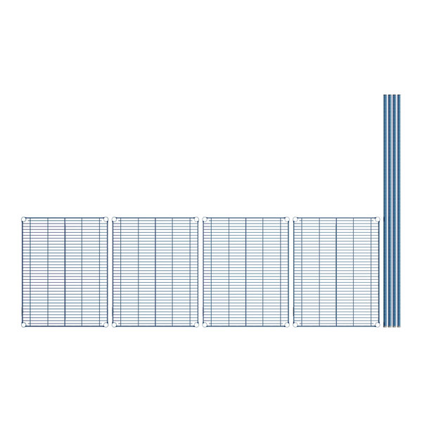 Lavex Pro 24" x 30" NSF Blue Epoxy Heavy-Duty 4-Shelf Kit with 64" Posts and Antimicrobial Coating