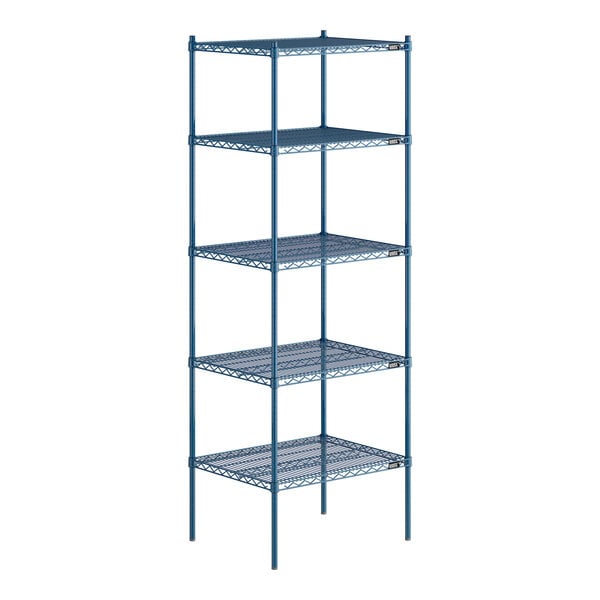 Lavex Pro 24" x 30" NSF Blue Epoxy Heavy-Duty 5-Shelf Kit with 86" Posts and Antimicrobial Coating