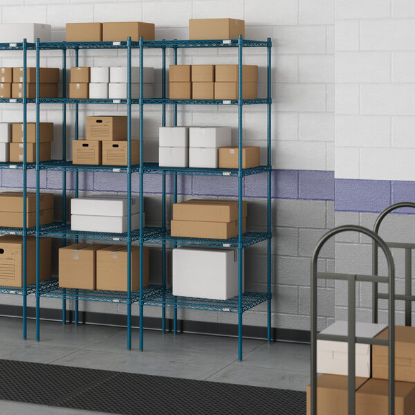 Designed for use in moist or damp environments, this shelving unit is an excellent choice for organizing and maximizing storage space. Whether you're looking to streamline your warehouse operations or simply need additional storage in your industrial facility, this heavy-duty shelving kit is the perfect solution. Mix and match with Lavex Pro accessories (sold separately) to personalize your kit! Invest in the Lavex Pro blue epoxy heavy-duty 5-shelf kit and experience the durability and functionality it brings to your workspace.