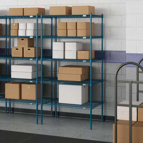 Designed for use in moist or damp environments, this shelving unit is an excellent choice for organizing and maximizing storage space. Whether you're looking to streamline your warehouse operations or simply need additional storage in your industrial facility, this heavy-duty shelving kit is the perfect solution. Mix and match with Lavex Pro accessories (sold separately) to personalize your kit! Invest in the Lavex Pro blue epoxy heavy-duty 5-shelf kit and experience the durability and functionality it brings to your workspace.