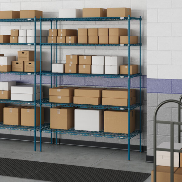 Designed for use in moist or damp environments, this shelving unit is an excellent choice for organizing and maximizing storage space. Whether you're looking to streamline your warehouse operations or simply need additional storage in your industrial facility, this heavy-duty shelving kit is the perfect solution. Mix and match with Lavex Pro accessories (sold separately) to personalize your kit! Invest in the Lavex Pro blue epoxy heavy-duty 5-shelf kit and experience the durability and functionality it brings to your workspace.