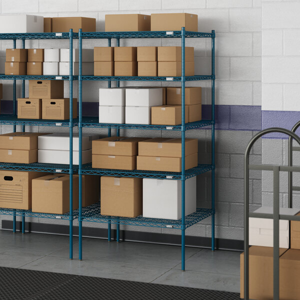 Designed for use in moist or damp environments, this shelving unit is an excellent choice for organizing and maximizing storage space. Whether you're looking to streamline your warehouse operations or simply need additional storage in your industrial facility, this heavy-duty shelving kit is the perfect solution. Mix and match with Lavex Pro accessories (sold separately) to personalize your kit! Invest in the Lavex Pro blue epoxy heavy-duty 5-shelf kit and experience the durability and functionality it brings to your workspace.